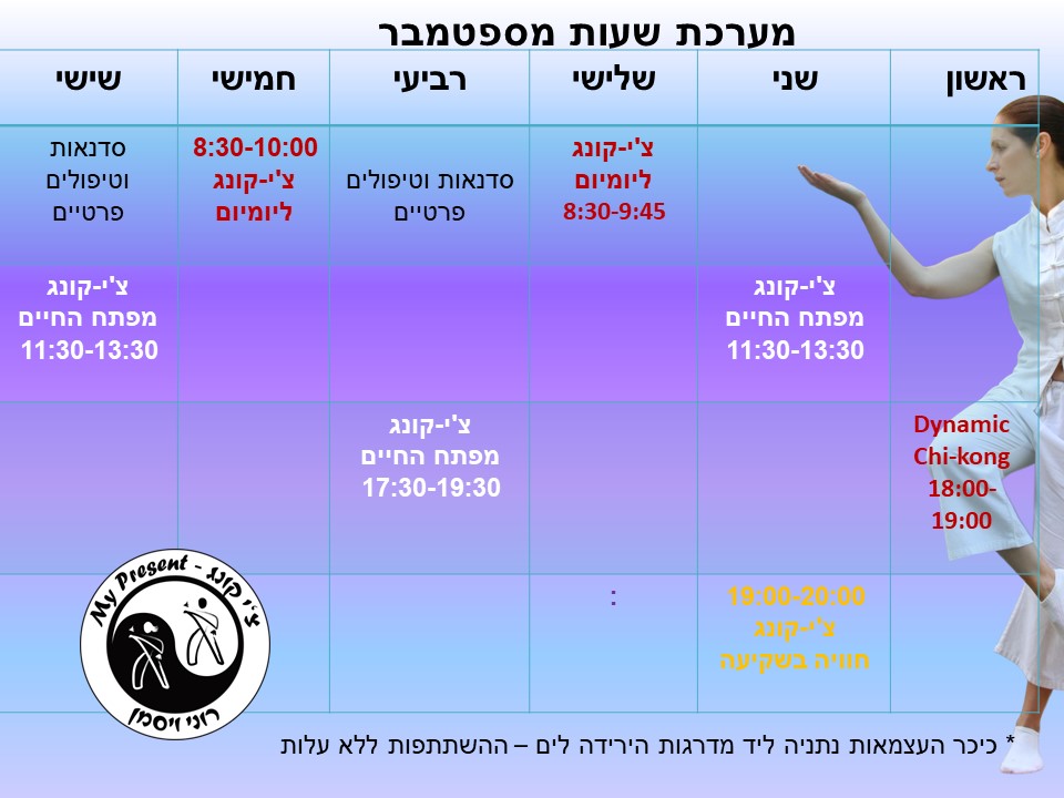 מזמינה אותך להתנסות בסדנא שתקנה לך כלים יומיומיים זמינים להתמודדות עם מתחים, באמצעות תרגילי צ’י-קונג פשוטים בעלי השפעה משמעותית.