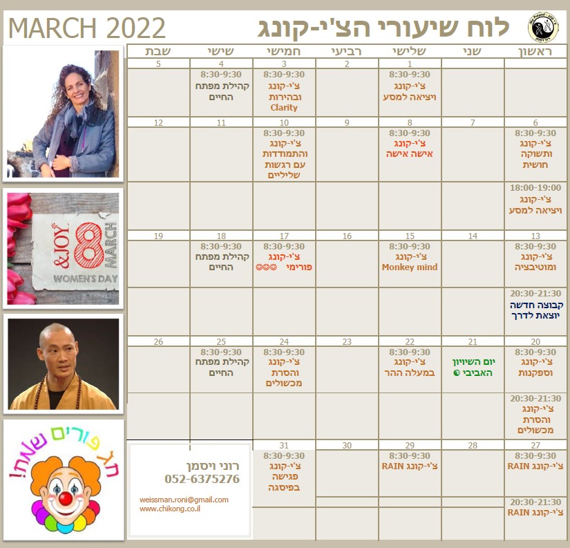 לוח שיעורי הצ'י-קונג מרץ 2022